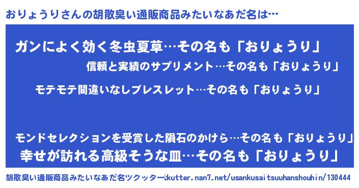 おりょうりさんの胡散臭い通販商品みたいなあだ名をツクッター!