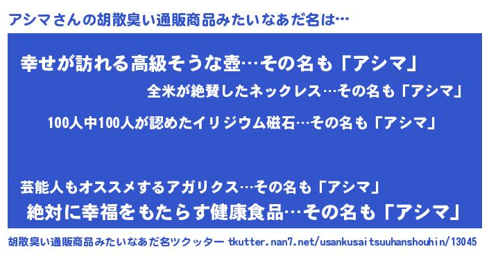 | 意味不明あだ名 | 『眠気覚ましガムアシマ味』『自称アシマ』 |