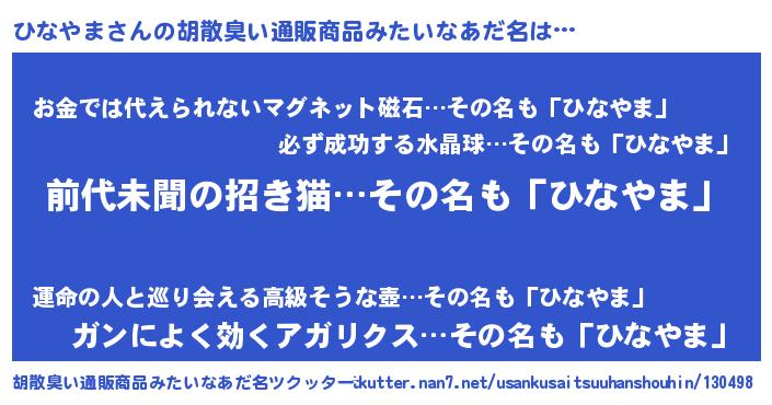 | ヒーロー風カッコイイあだ名 | 『ネオヒナヤマ』『愛の使者ひなやま』 |