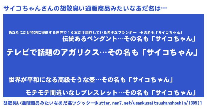 | ヒーロー風カッコイイあだ名 | 『サイバー戦士サイコチャン』 |