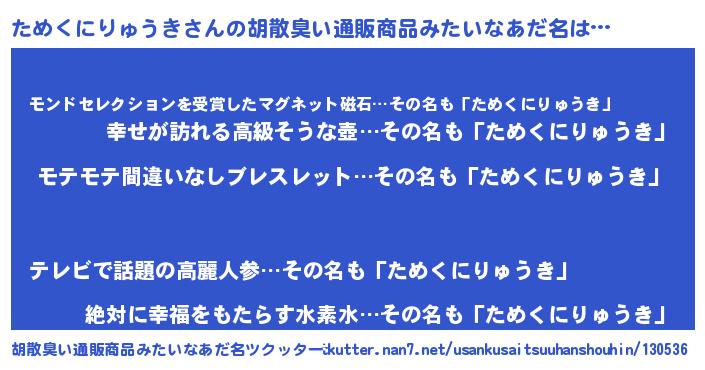 | 男性向けラノベタイトル風あだ名 | 『ためくにりゅうきの憂鬱』 |