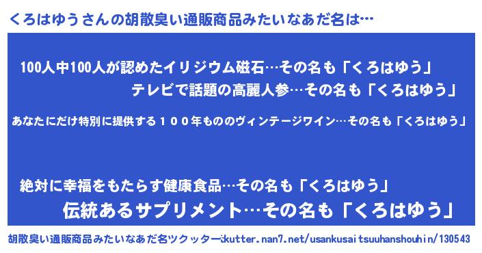 | 意味不明あだ名 | 『住所不定無職くろはゆう(5歳)』 |