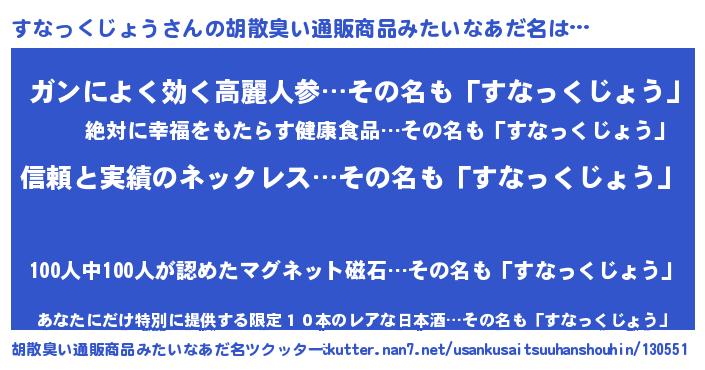 | ヘコむあだ名 | 『すなっ子』『すなっくじょう(笑)』 |