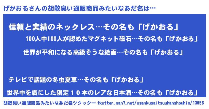 | 意味不明あだ名 | 『げかおるフォーエバー』『自称げかおる』 |