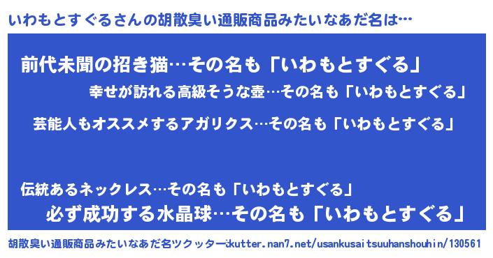 | ヘコむあだ名 | 『いわもとすぐる(爆)』『いわにー』 |