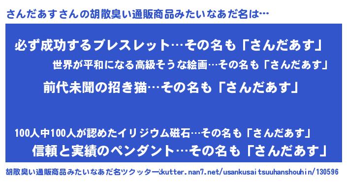 | 意味不明あだ名 | 『永久保存さんだあす』 |