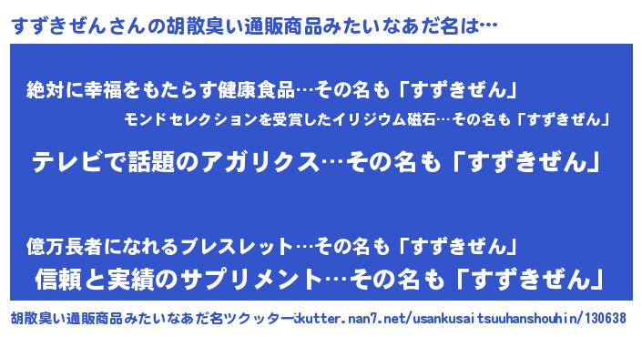 | 意味不明あだ名 | 『自称すずきぜん』『永久保存すずきぜん』 |