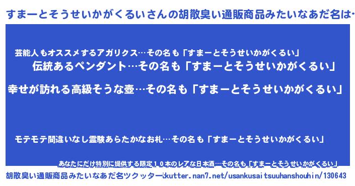 | 意味不明あだ名 | 『すまーとそうせいかがくるいフォーエバー』 |