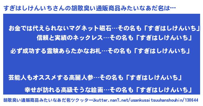 | 肩書あだ名 | 『すぎはしけんいち御曹司』 |