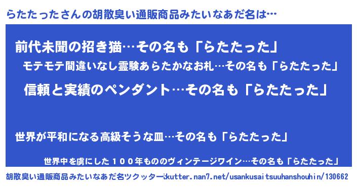 | ピコ太郎風あだ名 | 『ラタ六郎』『ピコラ郎』『ラコ三郎』 |