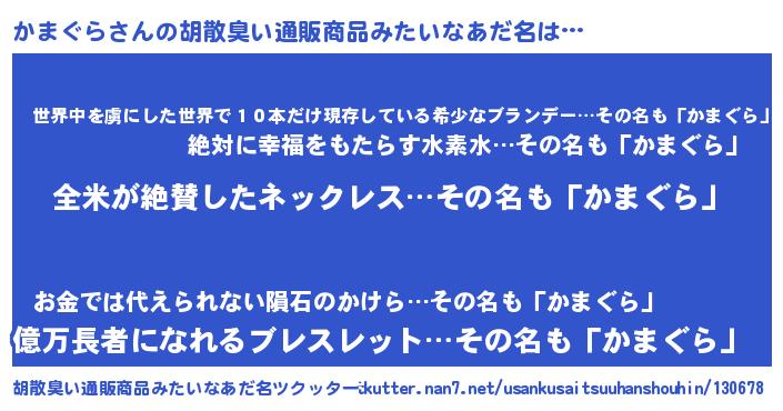 | 意味不明あだ名 | 『とにかく怪しいかまぐら』 |