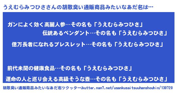 | 肩書あだ名 | 『うえむらみつひさCEO』 |