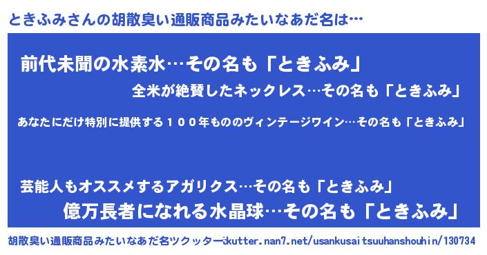 | 恥ずかしいあだ名 | 『ときちん』『プリティーときふみ』 |