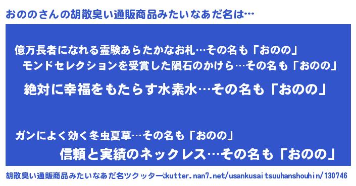 | ヘコむあだ名 | 『おのの(遠い目)』『おのっふぃ~』 |