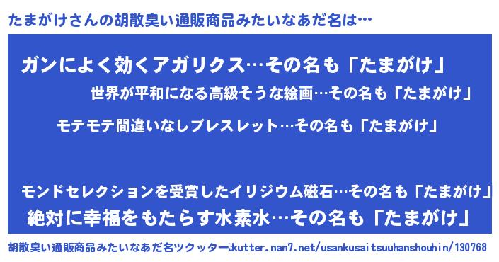 | ヘコむあだ名 | 『たまにー』『たまがけ(小並感)』 |