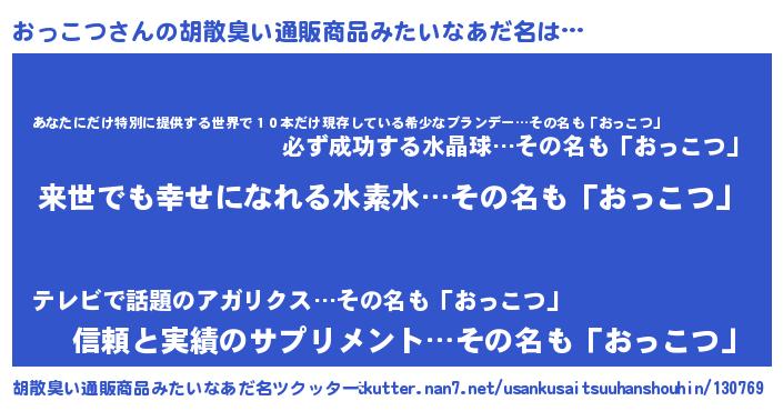 | 男性向けラノベタイトル風あだ名 | 『転生したらおっこつだった件』 |