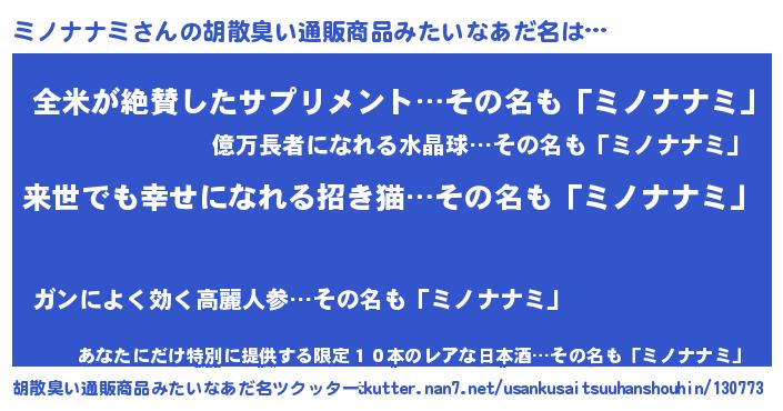 | 男性向けラノベタイトル風あだ名 | 『ミノナナミという概念が存在しない退屈な世界 』 |