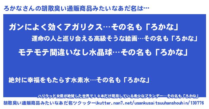 | 意味不明あだ名 | 『ペロリンろかな』『自称ろかな』 |