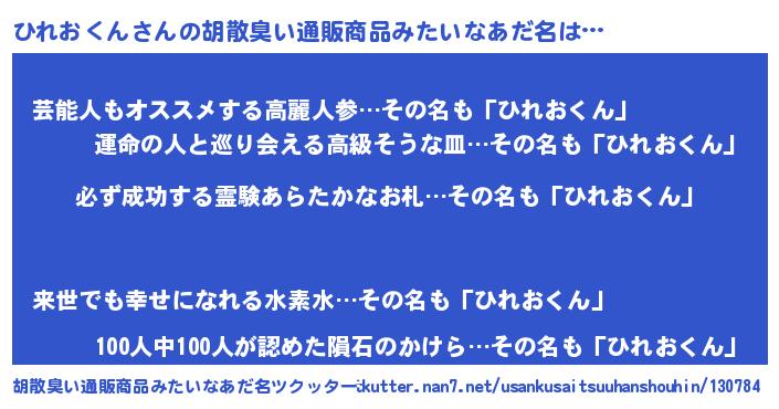 | 伝説のあだ名 | 『伝説のスナイパーひれおくん』 |