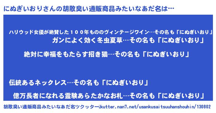 | ヘコむあだ名 | 『にぬぎいおり(小並感)』『にぬにー』 |