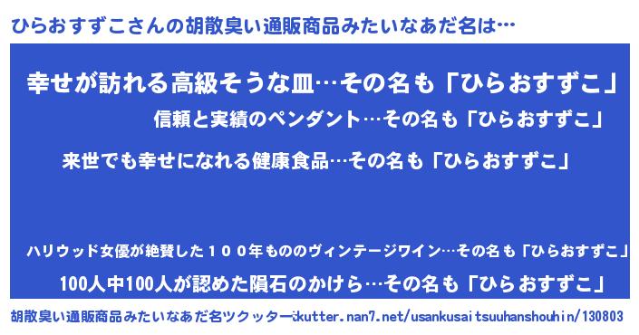 | ヘコむあだ名 | 『ひらおすずこ(爆)』『つくし』 |