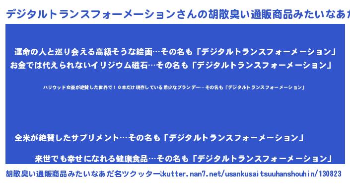 | 今でしょ! | 誰がやるか?『デジタルトランスフォーメーションさんでしょ!』 |