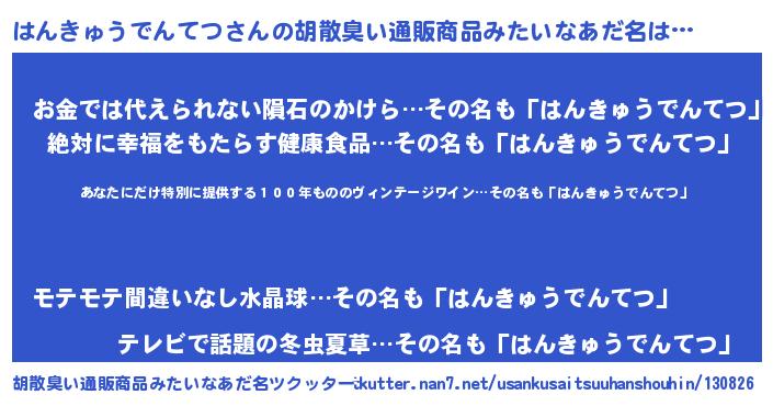 | 欧米人風あだ名 | 『ダレノガレはんきゅうでんてつ』 |