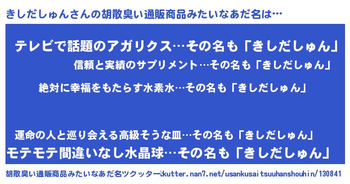 | ヘコむあだ名 | 『きしだしゅん(苦笑)』『きしにゅー』 |