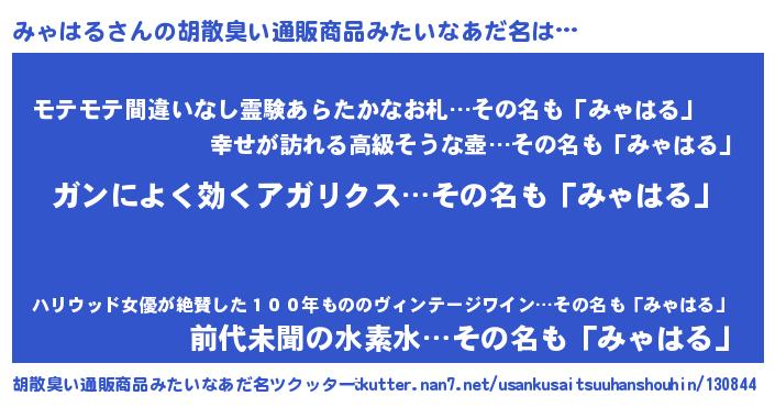 | ヘコむあだ名 | 『みゃにゅー』『みゃはる(笑)』 |