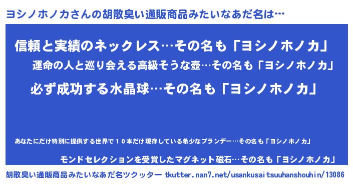 | 恥ずかしいあだ名 | 『プリティーヨシノホノカ』『ヨシっちょ』 |
