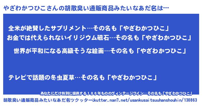 | 男性向けラノベタイトル風あだ名 | 『転生したらやざわかつひこだった件』 |