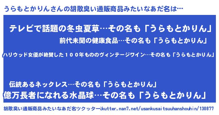 うらもとかりんさんの胡散臭い通販商品みたいなあだ名をツクッター!