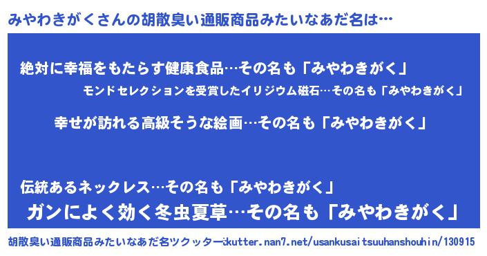 | 欧米人風あだ名 | 『みやわきがく・ステッグマイヤー』 |