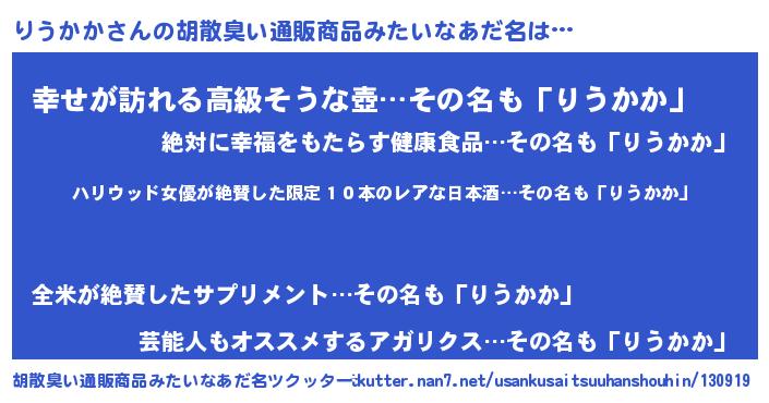 | ヘコむあだ名 | 『牛乳』『りうかか(笑)』『りうっ子』 |