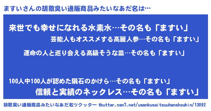 | ヒーロー風カッコイイあだ名 | 『ウルトラますいマン』『ネオマスイ』 |
