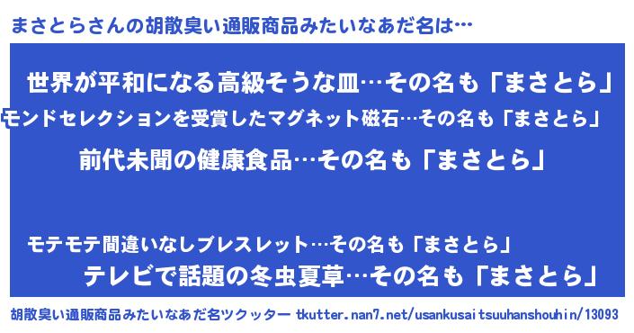 | ヘコむあだ名 | 『まさとら(笑)』『酢こんぶ』 |