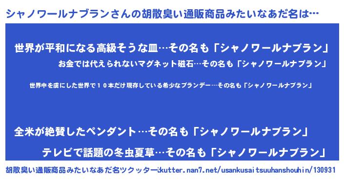 | 欧米人風あだ名 | 『ダレノガレシャノワールナブラン』 |
