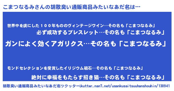| 女子向けラノベタイトル風あだ名 | 『こまつなるみなんてお断りですっ。』 |