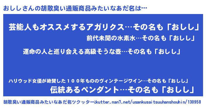 | ヘコむあだ名 | 『酢こんぶ』『おしを』 |