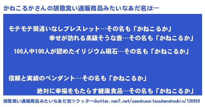 | ヒーロー風カッコイイあだ名 | 『正義の使者かねこるか』『暗黒騎士カネ』 |