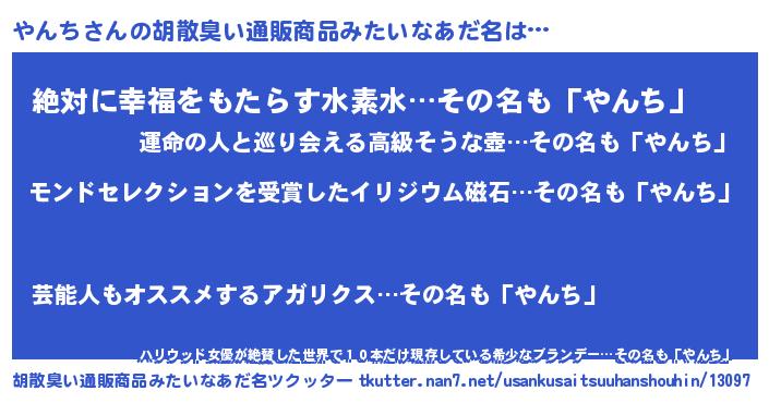 | ヘコむあだ名 | 『やんち(爆)』『牛乳』『やんもー』 |