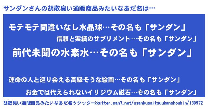 | ヘコむあだ名 | 『サンダン(震え声)』『サンにゅー』 |