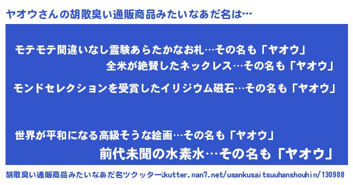 | ヘコむあだ名 | 『ヤオにゅー』『ヤオウ(遠い目)』 |