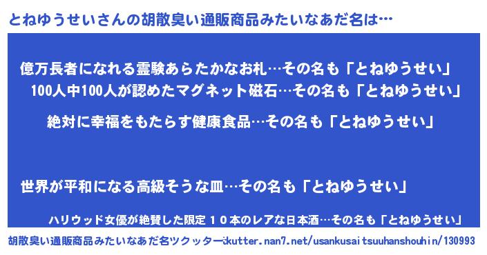 | ヘコむあだ名 | 『とねゆうせい(爆)』『とねもー』 |