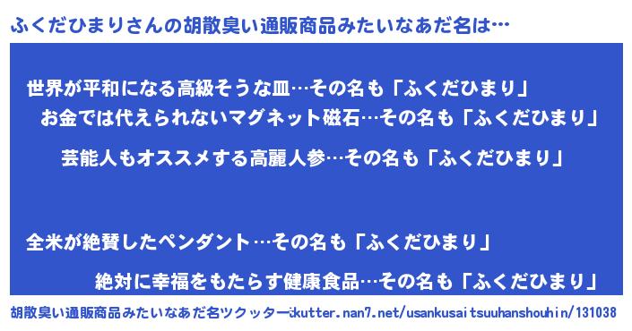 | 意味不明あだ名 | 『自称ふくだひまり』 |
