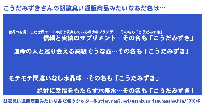 | ヘコむあだ名 | 『酢こんぶ』『こうだみずき(爆)』 |