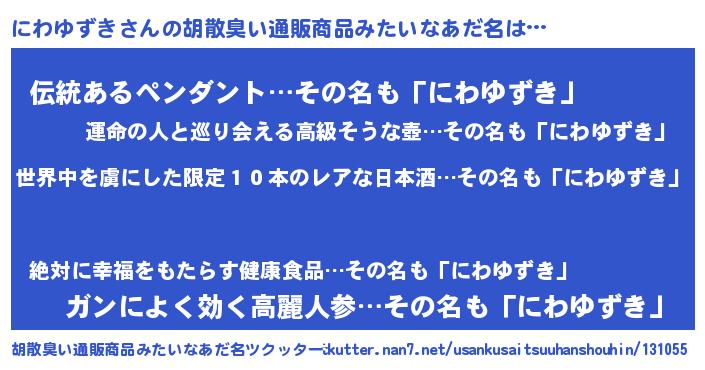 | 意味不明あだ名 | 『住所不定無職にわゆずき(65歳)』 |