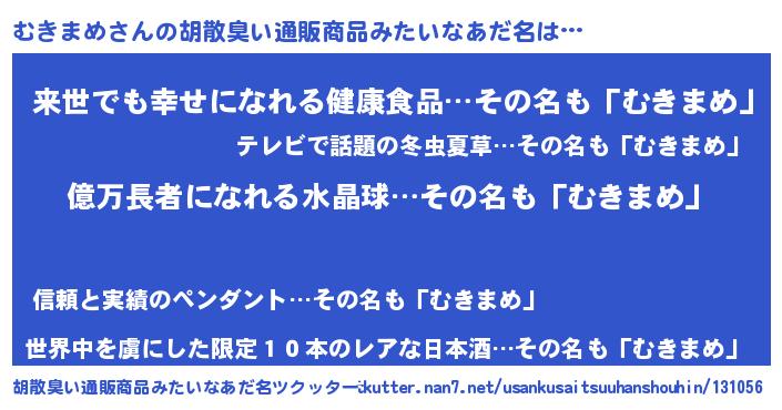 | ヘコむあだ名 | 『むきにゅー』『むきまめ(笑)』 |