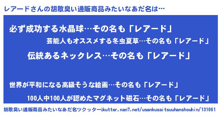 | ヒーロー風カッコイイあだ名 | 『幻影騎士レア』『スーパーレアード』 |
