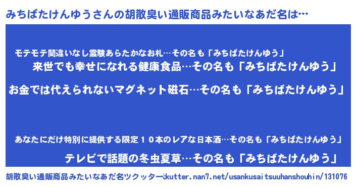 | 意味不明あだ名 | 『眠気覚ましガムみちばたけんゆう味』 |